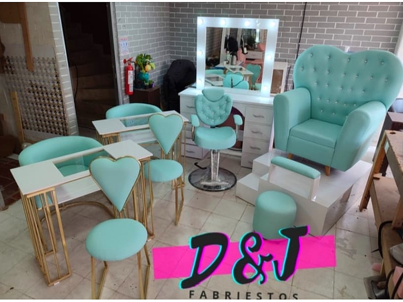 Equipos completos para salones de belleza, que incluyen estaciones de trabajo, espejos, sillas y otros elementos esenciales para ofrecer un servicio profesional. Cada combo está cuidadosamente diseñado para optimizar el espacio, la funcionalidad y el estilo del salón.