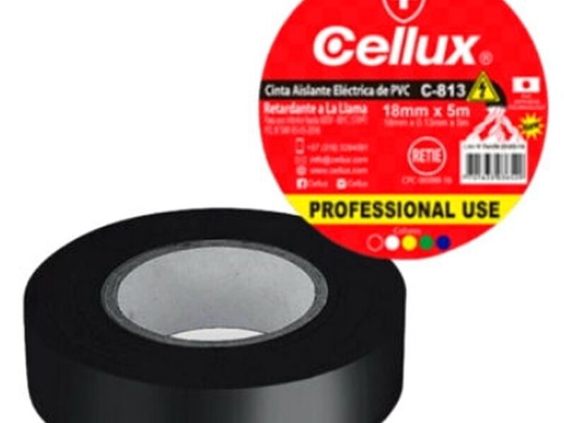 La cinta aislante eléctrica Cellux ®, de uso profesional, es una cinta con soporte de PVC plastificado y adhesivo de caucho natural especialmente diseñada para aislamiento eléctricos en cables de baja tensión que requieren calidad y seguridad de empalmes y uniones.