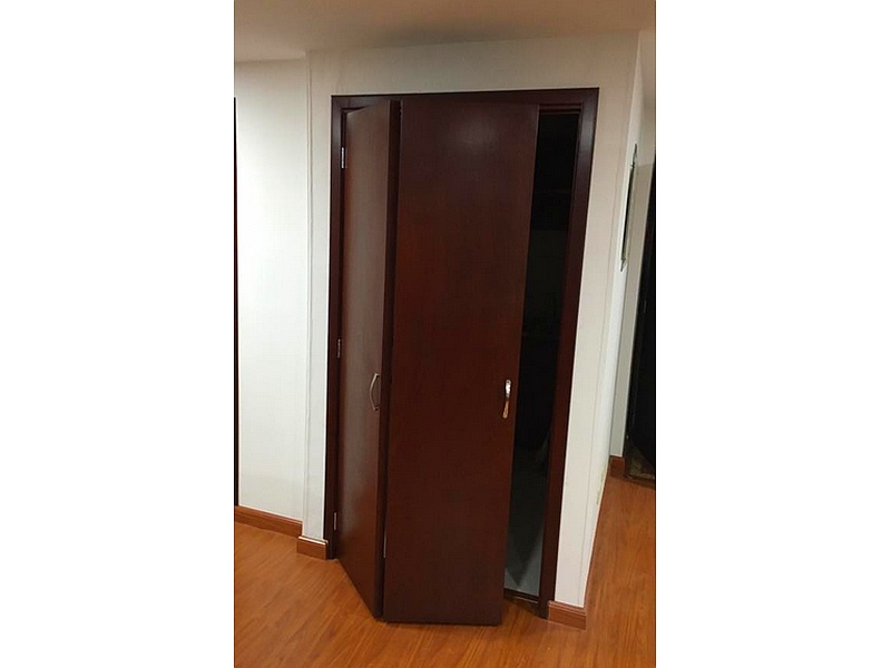 La puerta plegable en madera, con terminación tintillada y laca catalizada, es una opción ideal para espacios reducidos. Su acabado tintillado ofrece un diseño distintivo y elegante, mientras que la laca catalizada proporciona una superficie resistente y fácil de mantener.