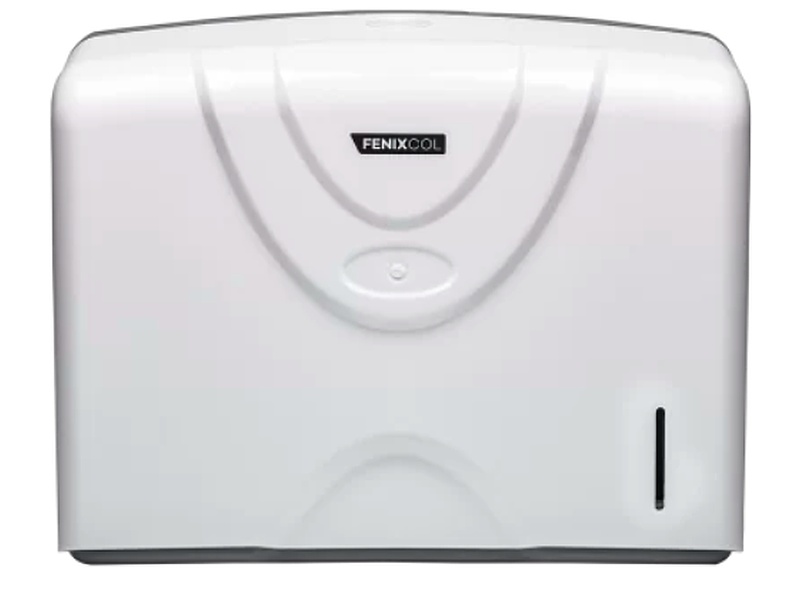 Dispensador de toallas para manos fabricado en plástico ABS, logrando mayor durabilidad y resistencia a golpes. Su presentación genera un aspecto agradable al ambiente en donde sea instalado. Su capacidad de 150 toallas dobladas, hace que sea ideal para espacios sin tanto tránsito.