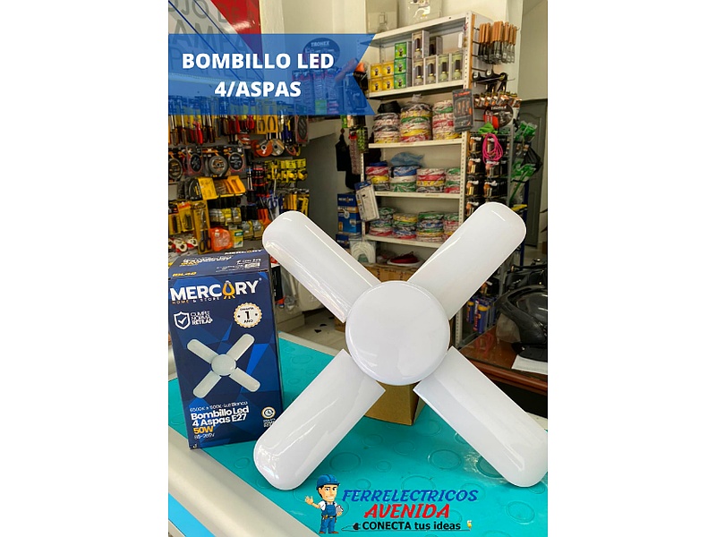 Bombillo LED de 4 aspas, diseñado para ofrecer una iluminación eficiente y amplia. Su diseño estilizado proporciona un estilo moderno y un rendimiento óptimo en cualquier espacio.