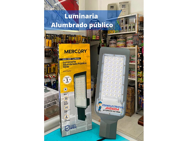 Luminaria de alumbrado público, ideal para iluminar calles y espacios exteriores. Su diseño robusto y eficiente garantiza visibilidad y seguridad en áreas urbanas.