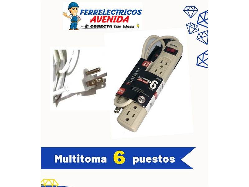 Multitoma de 6 puestos blanca, perfecta para conectar múltiples dispositivos eléctricos. Su diseño compacto y funcional permite una organización eficiente en el hogar o la oficina.