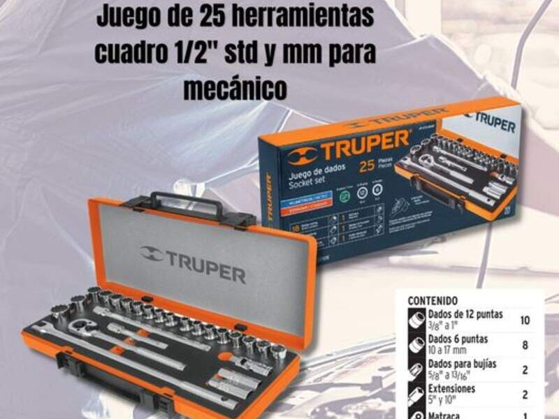 Juego de 25 herramientas cuadro 1/2" std y mm para mecánico