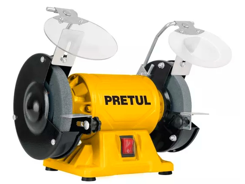 Herramienta de taller fija con dos discos abrasivos en los extremos, usada para afilar herramientas, desbarbar metales y dar forma a piezas de trabajo.