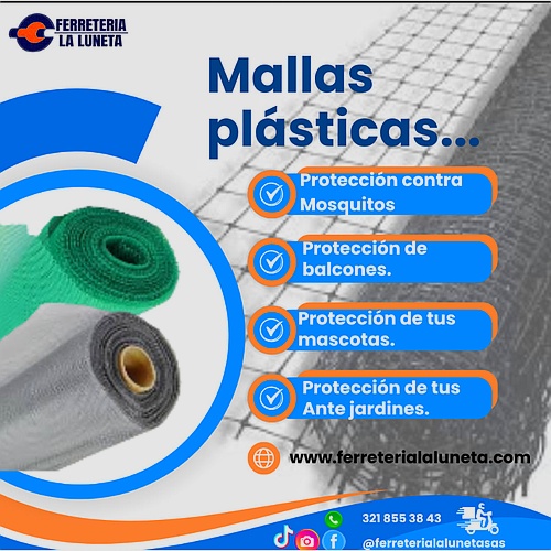 En Ferretería La Luneta SAS, nos especializamos en ofrecer una amplia variedad de mallas plásticas diseñadas para proporcionar soluciones de protección y seguridad en diversos entornos. Nuestras mallas son ideales para jardines, balcones, áreas para mascotas, y como barreras contra mosquitos y otros insectos. Fabricadas con plástico de alta calidad, como polietileno y PVC, estas mallas destacan por su durabilidad y resistencia a las condiciones climáticas extremas, incluyendo la exposición a rayos UV y la humedad. En el ámbito de los jardines, nuestras mallas protegen eficientemente las plantas de animales y permiten crear barreras que delimitan distintas áreas del espacio verde. Para balcones, ofrecemos mallas que aseguran un entorno seguro al evitar que objetos pequeños caigan y al mantener a las mascotas dentro de un área segura, sin comprometer la visibilidad ni la ventilación. Además, nuestras mallas específicas para mascotas están diseñadas para ser resistentes y seguras, adaptándose a diferentes tamaños y necesidades. Para aquellos que buscan una solución efectiva contra insectos, nuestras mallas anti-mosquitos ofrecen una barrera eficaz que permite el paso del aire mientras bloquea la entrada de mosquitos y otros insectos molestos, ideal para su uso en ventanas, puertas y áreas de descanso al aire libre. Disponibles en rollos de diversos tamaños y con diferentes tamaños de malla, nuestras soluciones plásticas son fáciles de instalar y mantener, garantizando una protección eficaz con un mínimo de esfuerzo. En Ferretería La Luneta SAS, nos comprometemos a proporcionar productos que combinan funcionalidad, durabilidad y versatilidad, adaptándose a sus necesidades específicas para mejorar la seguridad y la comodidad en su entorno.