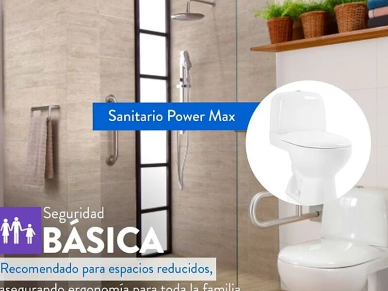 Sanitario Power Max: Inodoro con características de alta eficiencia en el uso de agua y potencia de descarga, garantizando una limpieza efectiva con cada descarga.