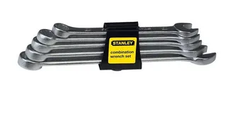 Set de llaves multipropósito, resistentes al aceite y a altas temperaturas. • Hechas en acero cromo vanadio para mayor durabilidad y resistencia a la corrosión. • Las llaves combinadas Stanley están hechas para sobrepasar largamente las normas industriales ANSI. • Su extremo abierto está orientado a 15º para lograr ajustes rápidos, mientras que su extremo de corona de 12 puntas brinda un ángulo de recuperación de 30º y máxima seguridad para altos torques. • Incorporan el sistema MaxiDrive™ de puntas redondeadas, exclusividad de STANLEY, para hacer esfuerzo en los costados de las tuercas, evitando que se barran. •