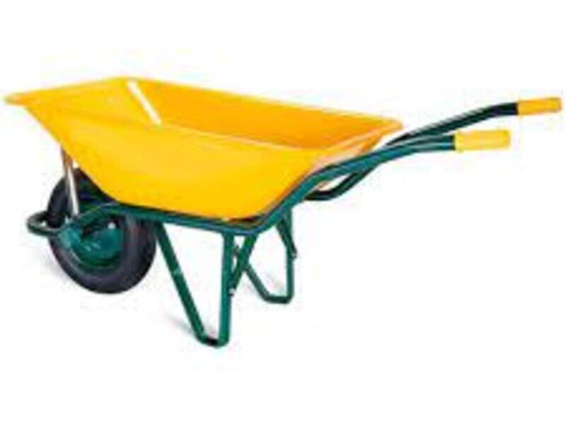 Vehículo pequeño formado por un recipiente con una rueda delantera y dos barras paralelas para agarrarlo y empujarlo, que se utiliza para transportar materiales pesados a corta distancia.