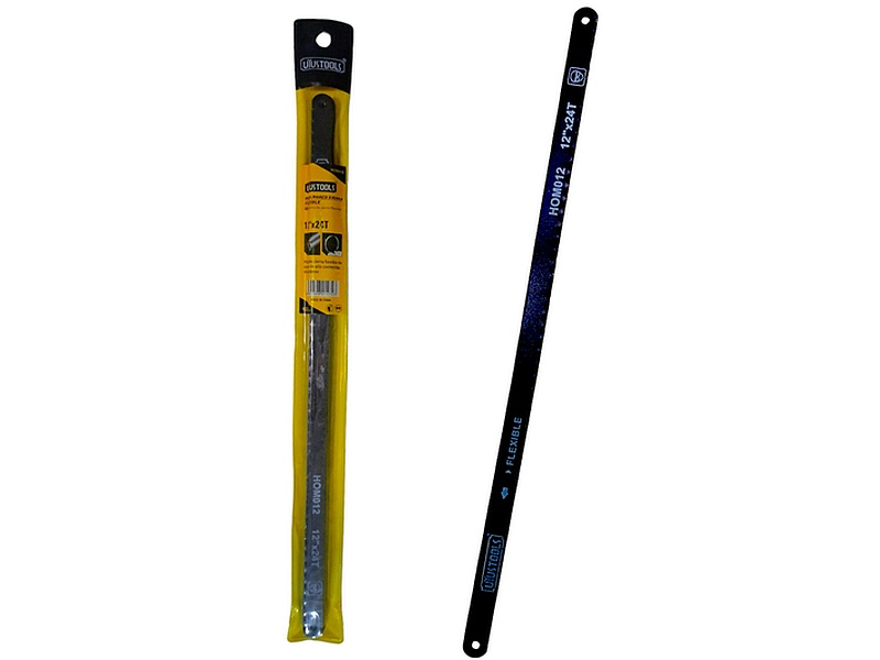 Hoja de corte de 12 pulgadas de largo y 24 dientes por pulgada, diseñada para realizar cortes precisos en metal, plástico y madera