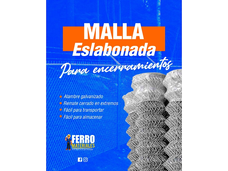 Malla eslabonada, Ideal para encerramientos en industrias, instituciones y potreros. Alambre galvanizado de gran resistencia.