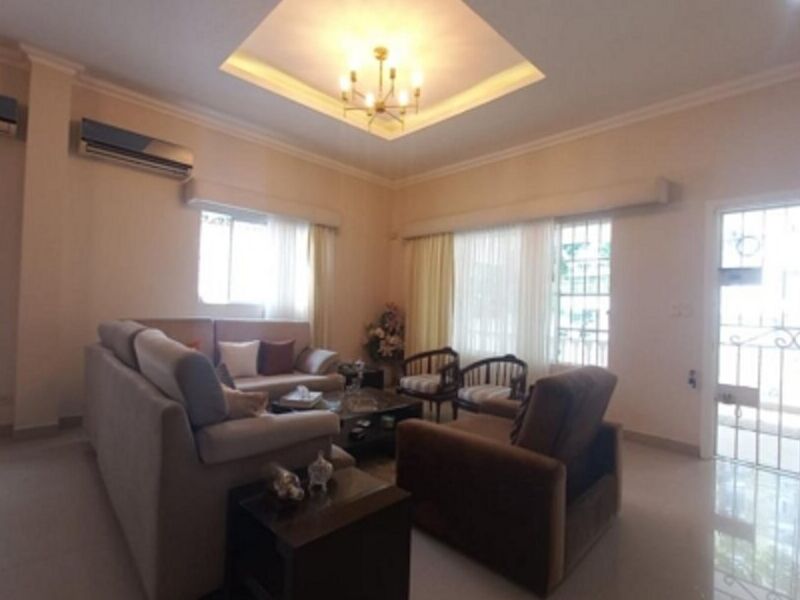 Hermosa casa ubicada en barrio Nuevo Horizonte, consta de amplia sala comedor, estudio, 4 habitaciones (3 con su baño y Vestier) cocina cerrada, cuarto y baño de servicio, lindo patio con pisos en baldosas y areas verdes, arboles frutales, BBQ, área de labores. Incluye: circuito cerrado de cámaras, sensor de movimiento, alarma, 7 aires acondicionados, lamparas y cortinas, calentador, portón eléctrico.