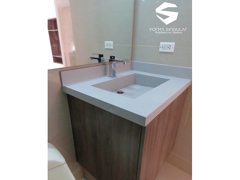 Mueble para lavabo de baño mezcla de madera con cuarzo y aluminio, para crear ambientes simples con mucha personalidad