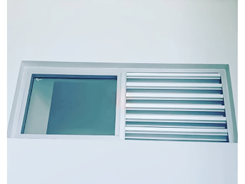 Suministro e instalación de divisiones de baño en vidrio templado y rejillas en aluminio.