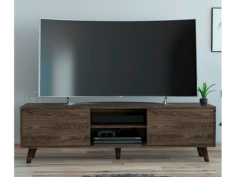 Rack para TV de 70'' maximo, puertas abatibles, espacios inferiores para colcoar objetos decorativos y equipos de audio y videos, dos puertas.