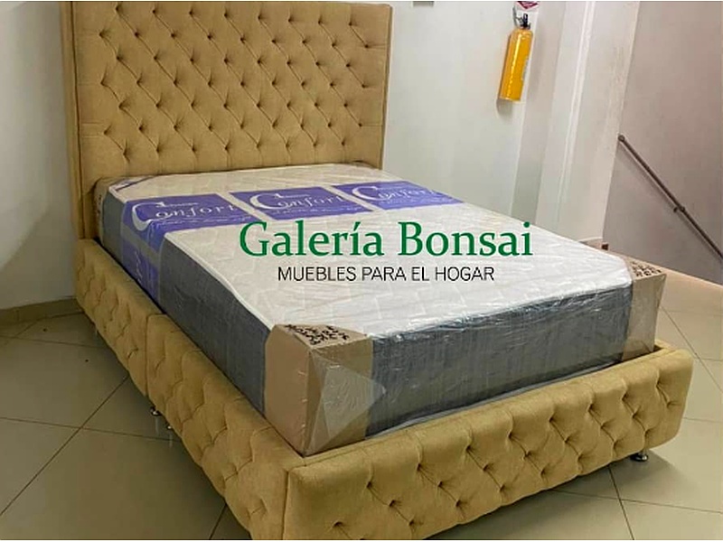 Su cabecera acolchada con detalles capitoneados crea un ambiente elegante y acogedor, mientras que su estructura robusta asegura un descanso reparador.