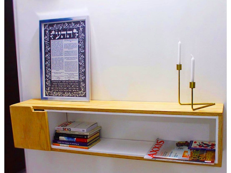 Estante flotante con un cajón y almacenamiento interno.