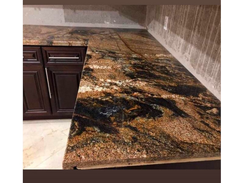 Mesón de cocina granito exótico magma gold.