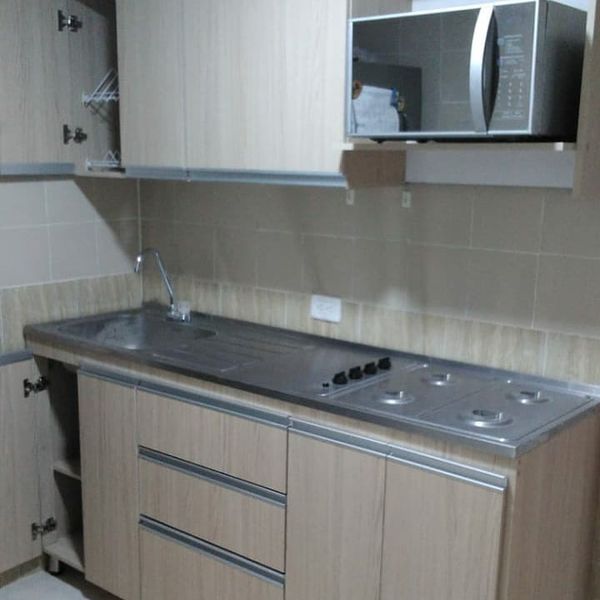 cocina Lineal en madera Rh 15mm y perfil manija.