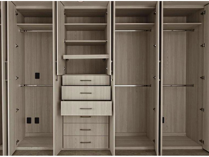 Optimiza el espacio de tu dormitorio con nuestro closet empotrado, diseñado a medida para ajustarse perfectamente a tus necesidades. Este closet ofrece una amplia capacidad de almacenamiento con estantes ajustables, cajones y barras para colgar ropa.