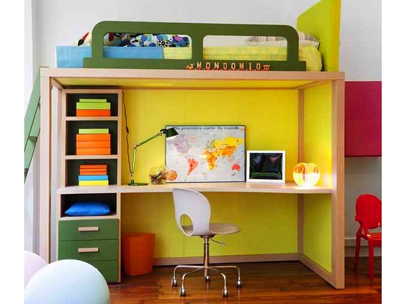 Cama amarilla con escritorio abajo