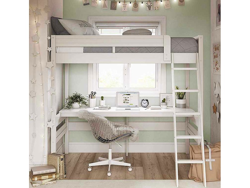 Cama blanca con escritorio