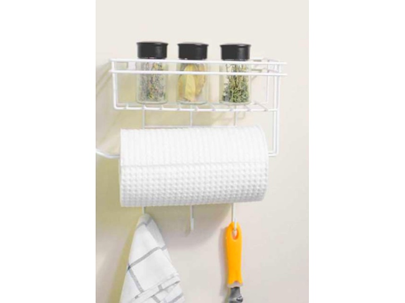 Libera espacio en tu encimera con esta canasta de metal colgante, ideal para cocinas pequeñas y de diseño moderno.