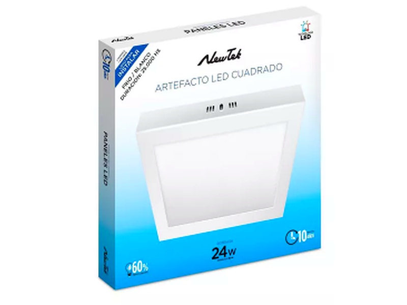 Descripción: Panel LED de techo cuadrado de 24W, diseñado para iluminar espacios grandes de forma eficiente.