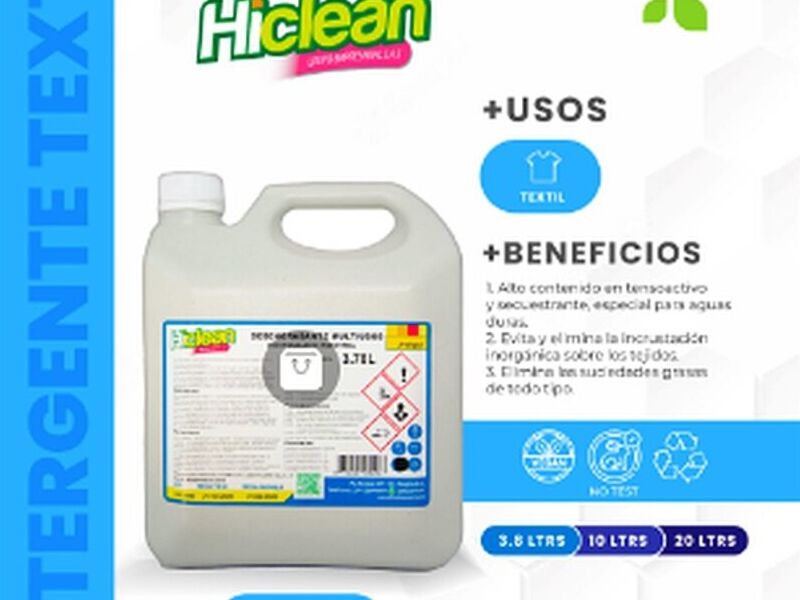 Nuestro Detergente textil de fácil manejo, Evita y elimina la incrustación orgánica, elimina suciedades difíciles y es un producto biodegradable.