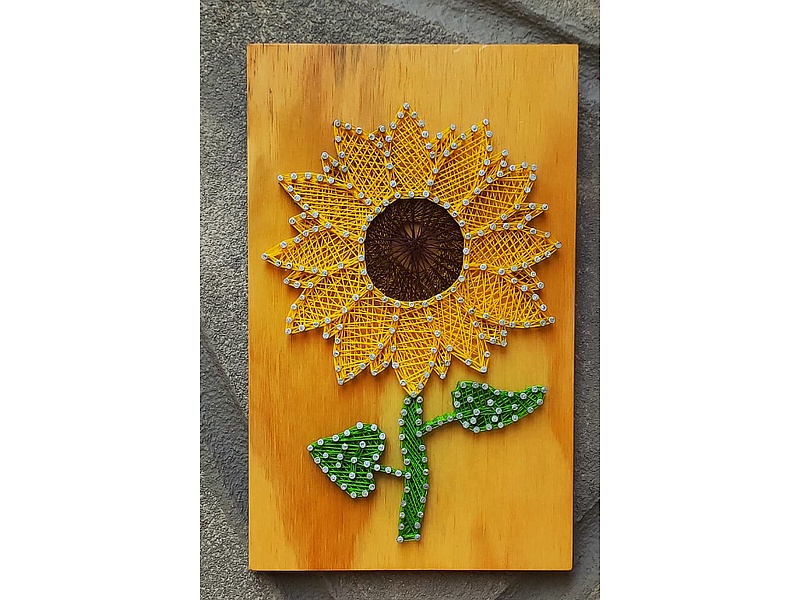 Reproduce la belleza de un girasol con hilos que crean una textura rica y detallada. Los tonos cálidos y vibrantes del girasol aportan una sensación de alegría y vitalidad a cualquier habitación.