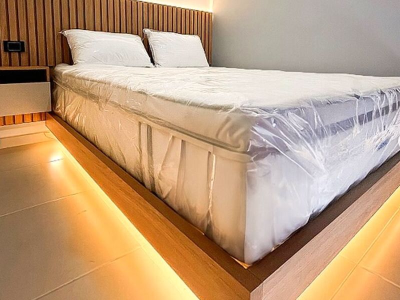 Pieza innovadora y elegante que da la ilusión de estar suspendida en el aire, añadiendo un toque futurista y sofisticado a cualquier dormitorio.