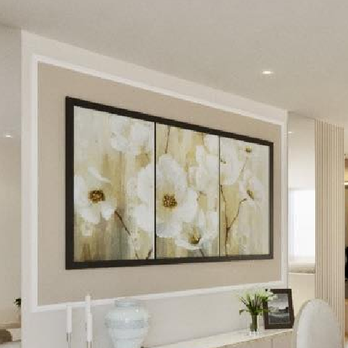 Cuadro de lienzo, cuadro de flores pintadas con oleo sobre lienzo con marco de madera negra
