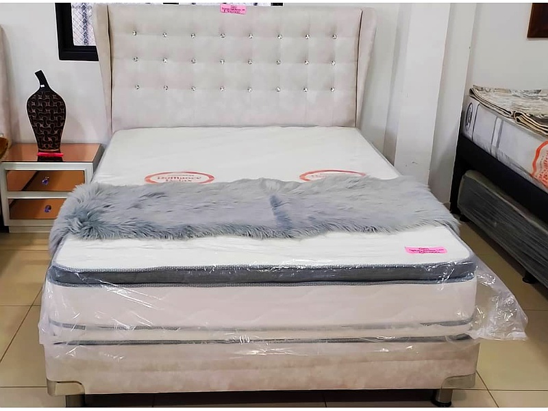 Su cabecera acolchada con botones le da un aire clásico, mientras que su estructura robusta te garantiza el descanso que mereces.