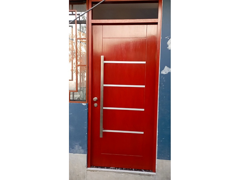 Consiste en un marco que rodea una abertura rectangular, y una hoja (o varias hojas) que se mueve para abrir o cerrar la abertura. La hoja de la puerta puede estar hecha de diversos materiales, como madera, metal, PVC o vidrio, y puede tener características adicionales como paneles decorativos, vidrieras, o elementos de seguridad como cerraduras y bisagras.
