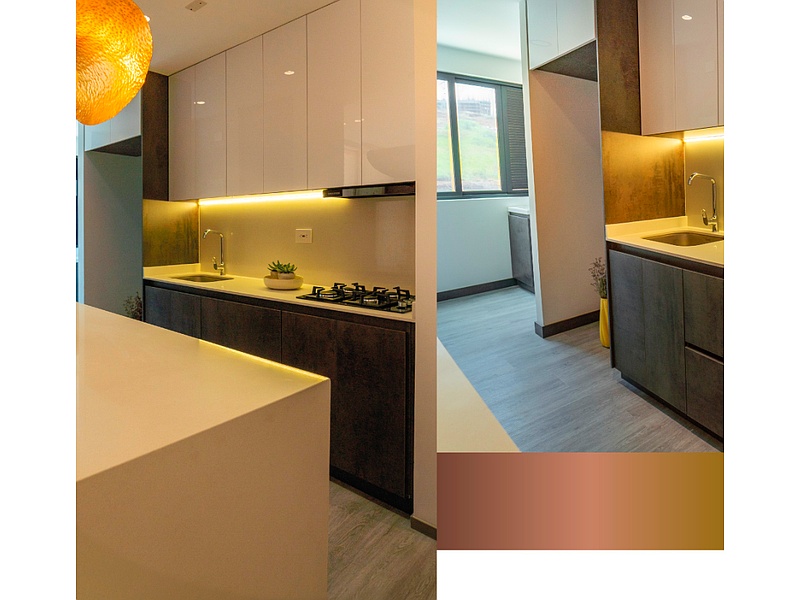 Ofrecemos Apartamento Cocina Lujo, con un diseño elegante y acabados de alta gama. La cocina está equipada con electrodomésticos modernos y detalles sofisticados, proporcionando un espacio culinario excepcional en un ambiente confortable y refinado.