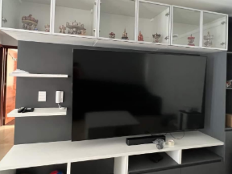Mueble diseñado para sostener y organizar componentes de entretenimiento, posiblemente con espacio para almacenamiento adicional.