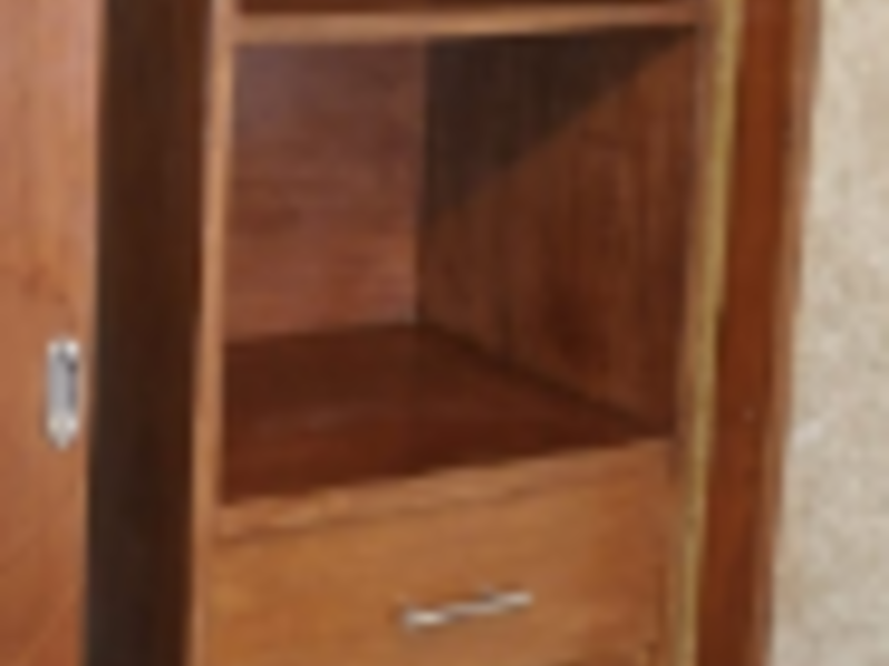 Armario compacto para almacenar ropa y accesorios. Puede tener cajones, estantes y perchas.