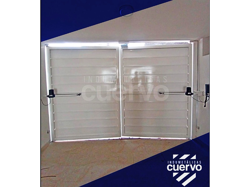 La puerta metálica de doble acceso, automatizada en color blanca es un elemento versátil y funcional, diseñado para ofrecer seguridad y practicidad en espacios como garajes, almacenes y tiendas.