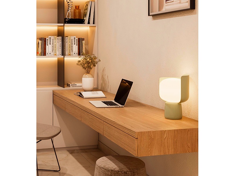 Escritorio flotante con cuatro cajones para estudio en casa.