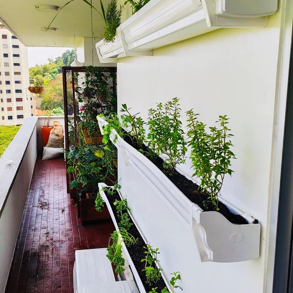 jardines verticales creados con la reutilización innovadora de canales de PVC.