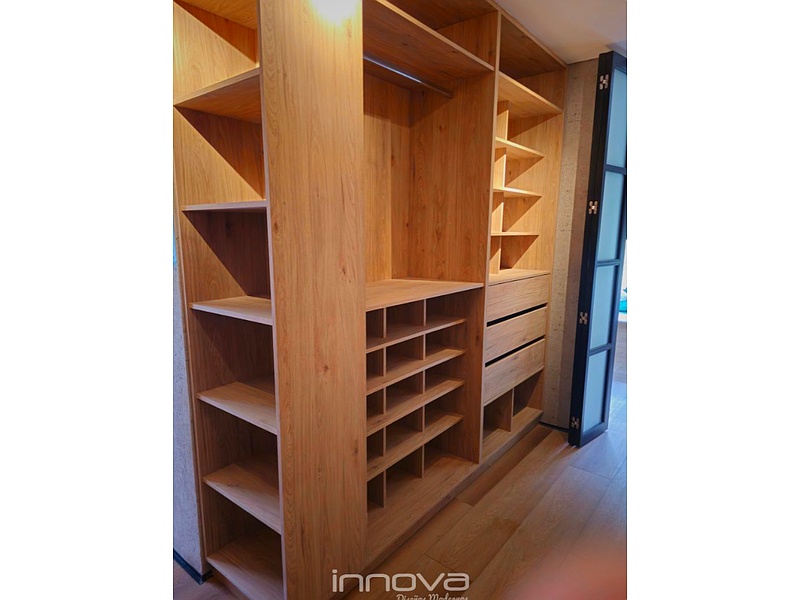 Clósets de madera, elegantes y duraderos, diseñados para maximizar el almacenamiento y organizar tu ropa y accesorios.