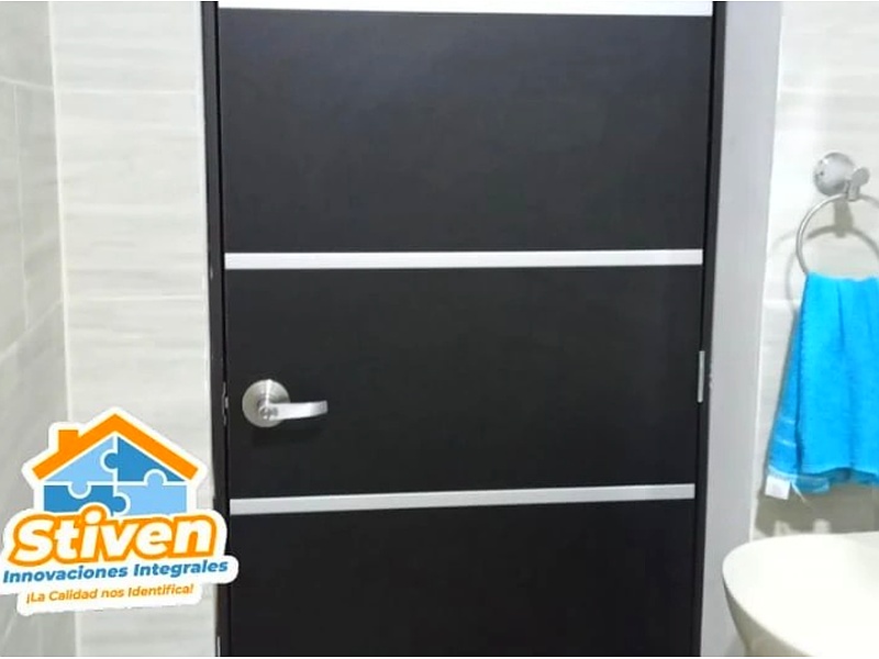 Disponibles en varios acabados, estas puertas ofrecen resistencia a la humedad y son una opción asequible para quienes buscan una renovación rápida con un toque elegante.