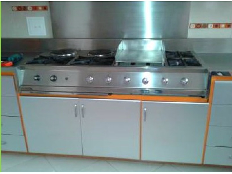 - Acabados en acero inoxidable: La estufa y otros elementos de la cocina están fabricados en acero inoxidable, lo que garantiza una alta durabilidad, resistencia a la corrosión y facilidad de limpieza.