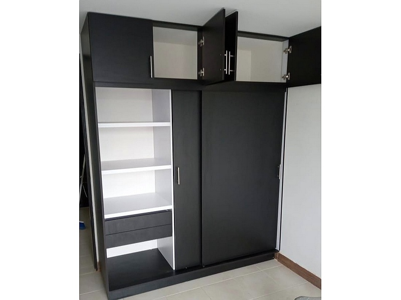 Closet en lamina aglomerada de 15ml, color wengue en puertas, el interior en color blanco.