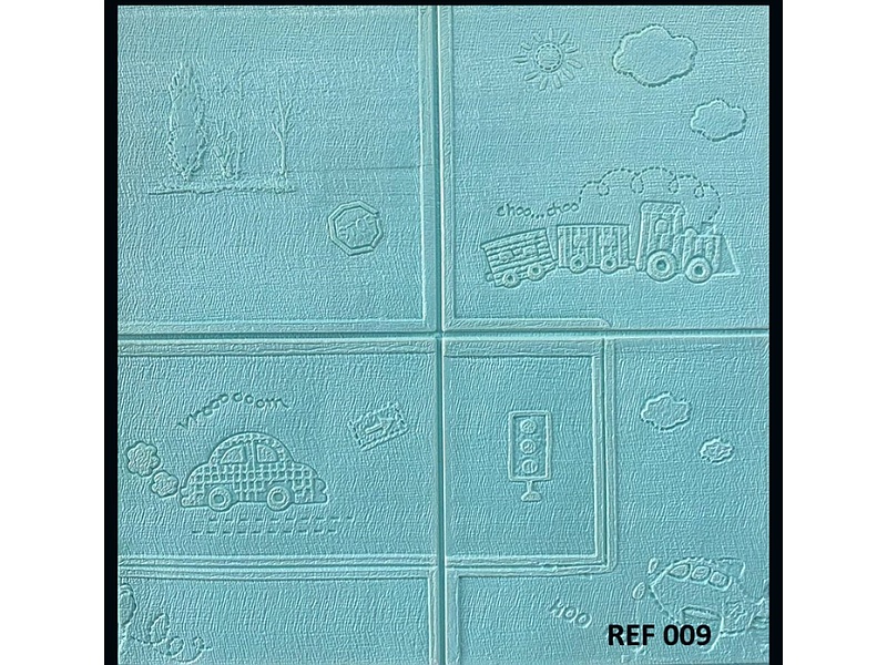 La imagen muestra un panel de pared con un diseño infantil y colorido.