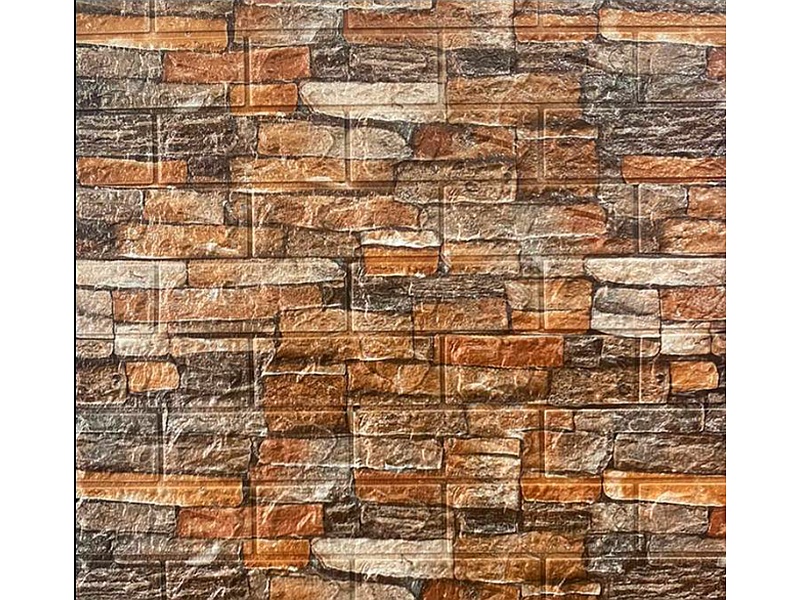 * Material: La pared parece estar compuesta de paneles o azulejos que imitan la apariencia de la piedra natural. Es probable que sea un material sintético diseñado para simular la textura y el color de una pared de ladrillo.