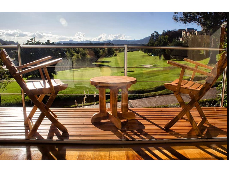 Mesas en madera teka lacadas en poliuretano para exterior, en una terraza perfecta para ver el atardecer!