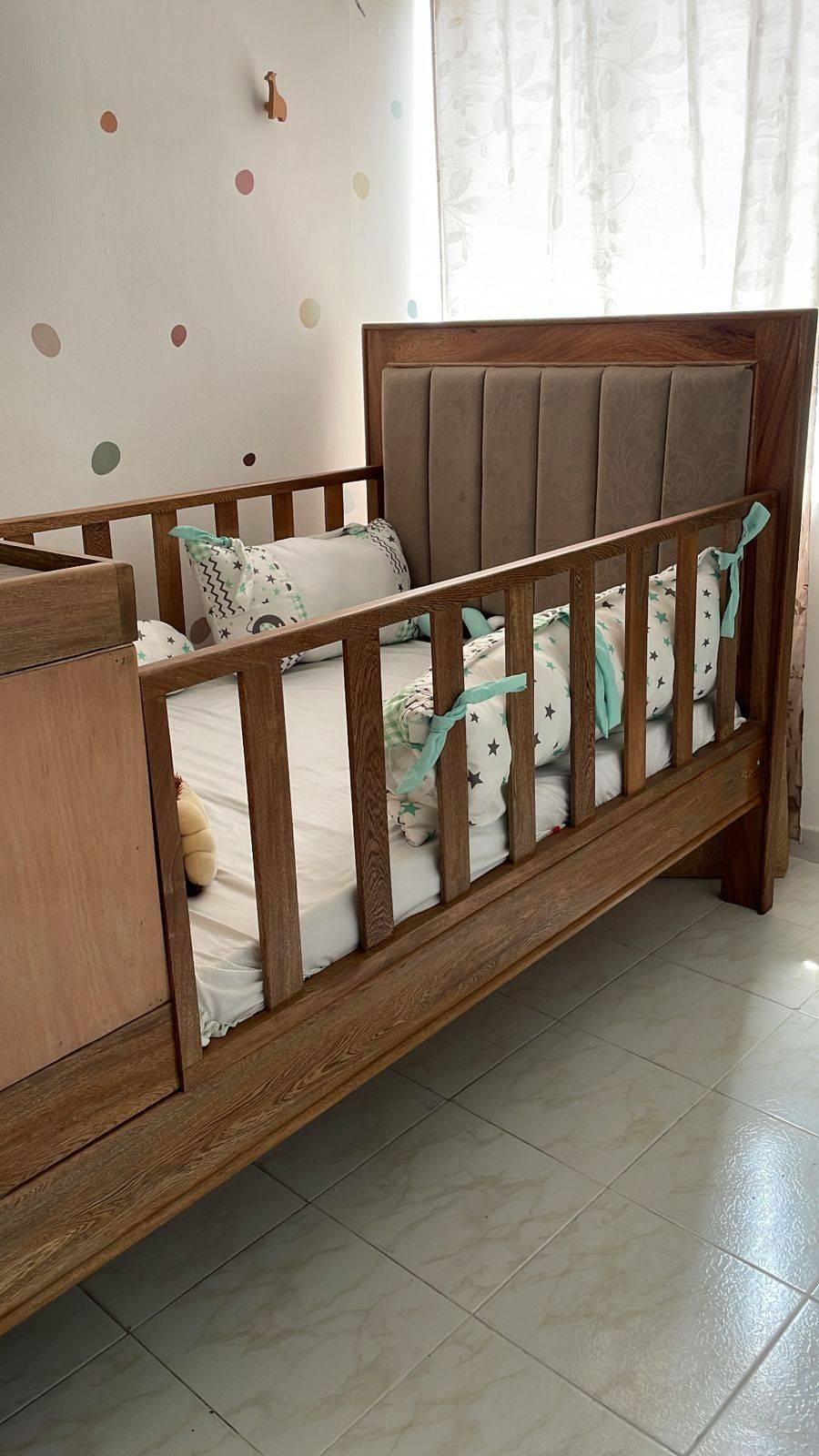 La cama cuna capitoneada de 1 1/2 plaza en color madera champán combina elegancia y funcionalidad. Con un diseño capitoneado que añade un toque sofisticado, esta cama es ideal para dormitorios modernos. La estructura de madera champán ofrece una estética cálida y lujosa, mientras que el tamaño de 1 1/2 plaza proporciona comodidad y versatilidad.