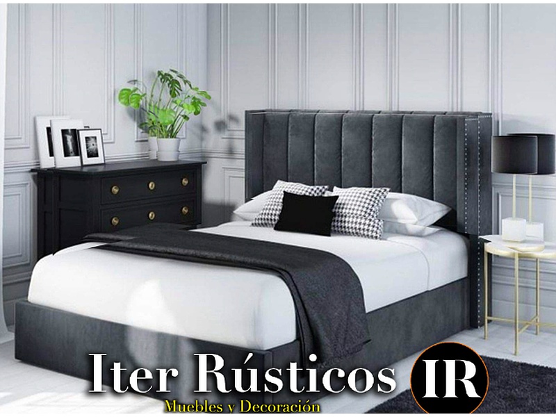 Disfruta del lujo y la comodidad con esta cama de diseñador lujosa. Con un cabecero alto tapizado en terciopelo y una base robusta de madera, ofrece un soporte firme y un estilo elegante.