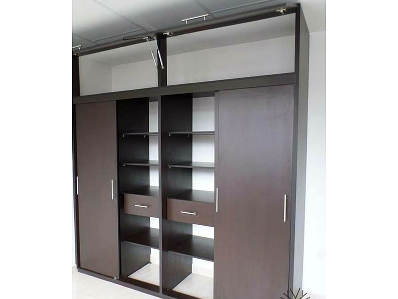 Armario Marrón con puertas corredizas.